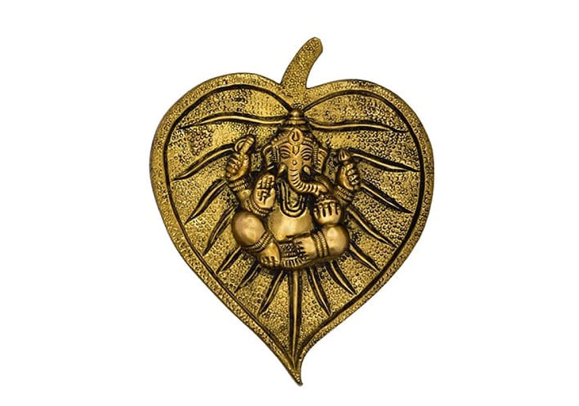HomeHomeSpiritualIdolsThe Advitya Brass 4 Hand Ganesha/Ganpati on Leaf Wall Hanging Ganpati Statue | Ganesh ji Idol for Home | Chaturbhuj Door Living Room | Birthday Wedding and Anniversay Gift