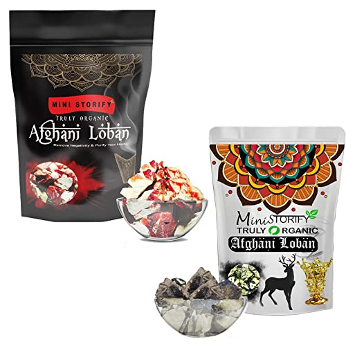 Mini Storify Truly Organic Afghani Loban - Pack of 2 (Red 250 gm + Black 150 gm) - Organic, Natural Pure Lobaan for Home Pooja Fragrance