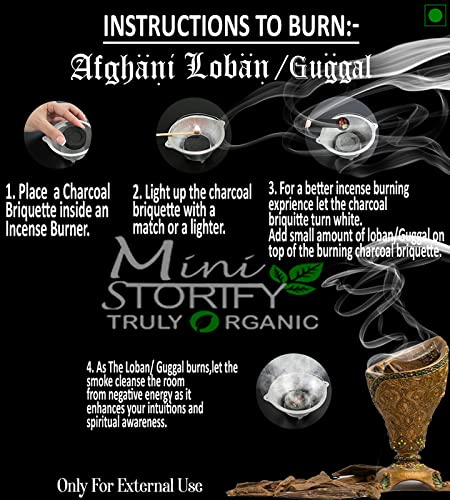 • Mini Storify Truly organic Afghani loban which Increase the Positivity and spirituality. Whether You want it for Spiritual Purpose (Havan Pooja) or just need to relax your mind and body You Can Use this powerful chemical free natural pure afghani loban.