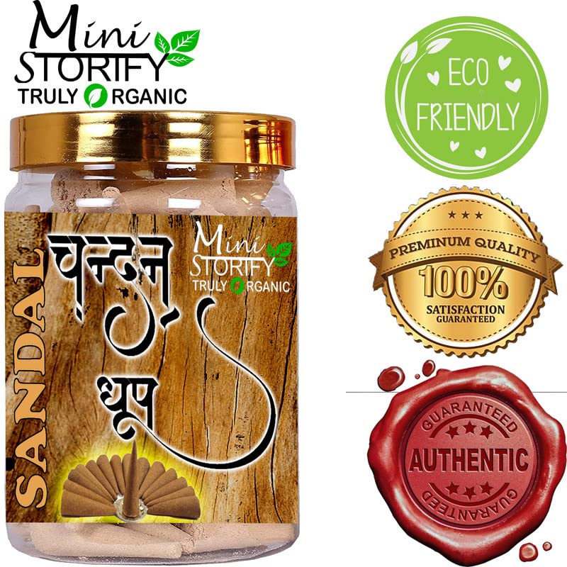 Mini Storify Truly Organic Incense Dhoop Cone for Pooja Home | Pack of 2 Mogra 70 pcs + Sandal 70 pcs