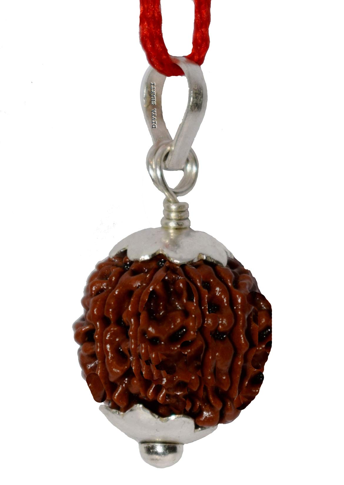 Divya Shakti Nepali 8 Mukhi/Faced Rudraksha Silver Pendant (15 mm; Brown)