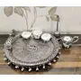• This is a Pooja thali that is very simple in its appearance. The sober it looks the more useful it is. This German silver Pooja set comes with all the items that are necessary to perform a Pooja successfully.