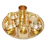 This is a dinnerware thali plate set consists of 1 plate (Thali) 4 bowls 1 tumbler 1 dessert spoon 1 fork knife. In India most of their dishes are served simultaneously in a thali. A thali is a round platter with an eared rim. Entire meals can be served using this simple plate. The thali is generally made with steel or copper. Other dishes served on a thali include vegetables yogurt chutney and pickles. In restaurants vegetarian or meat-based thalis can be served. Thali is delightful ways to enjoy Indian cuisine. It serves a balanced meal in itself and the flavours are so well rounded that palates will certainly be satisfied. Care Tips: - Clean your copperware by hand and avoid dishwasher as the detergent can cause oxidation leading to permanent damage. Use a solution of equal quantities vinegar or lemon juice and salt diluted with some water at such times but don't use it regularly. Also avoid scratchy cleaners like steel wool. A simple soft cleaning liquid on soap base hot water and a soft washing cloth is best for daily use.