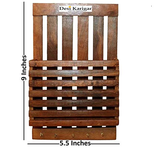 Beautiful Wooden Wall Rack With Key Holder Adorn the walls of your home with this elegant wall shelf . Made of high premium quality material it is easy to maintain. This is a nice way of housing your books keys souvenirs decorative and other curies.Colour - Brown Size - (LxBxH-9x3x11) Inch Material Used - wood Package Contents - Pack of 1"