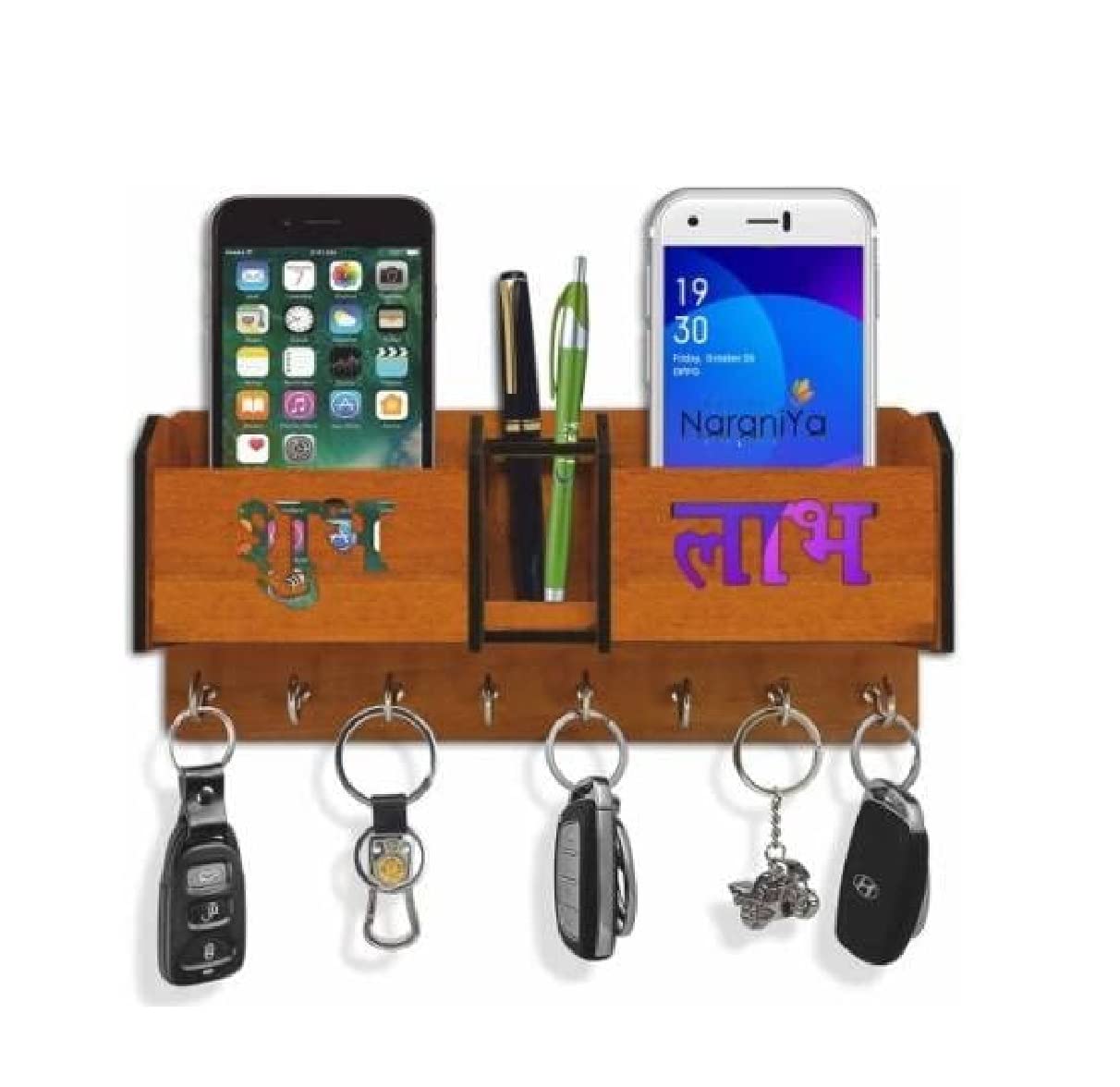 WOOD CRAFTS OF RAJASTHAN Wooden Key Holder with 8 Hooks || Gift for Clients Customers Family & Friends Home Office Teachers Gift Thank You Gift House Warming New Year Promotion.