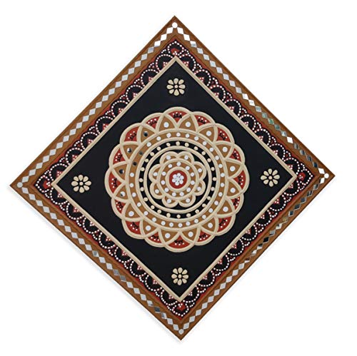 Color:Cream - Maroon - 1Traditional Kutchi Lippan Kam which was practiced on walls of Bhunga - Tribal Huts of Maldharis and Nomads has now transformed and made suitable for Modern Homes. Clay is mixed with Adhesive and laid out finely with hand on Water Proof Wooden Ply. This Mud Art Lippan Kam is perfect for Interior Décor House Warming (Vastu) and Gifts for occassions