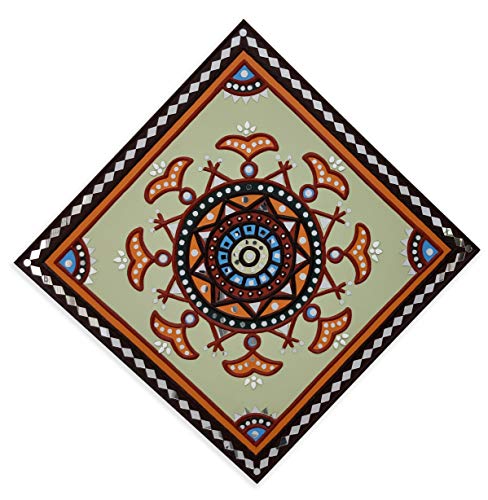 Color:Pista - Orange - 11Traditional Kutchi Lippan Kam which was practiced on walls of Bhunga - Tribal Huts of Maldharis and Nomads has now transformed and made suitable for Modern Homes. Clay is mixed with Adhesive and laid out finely with hand on Water Proof Wooden Ply. This Mud Art Lippan Kam is perfect for Interior Décor House Warming (Vastu) and Gifts for occassions