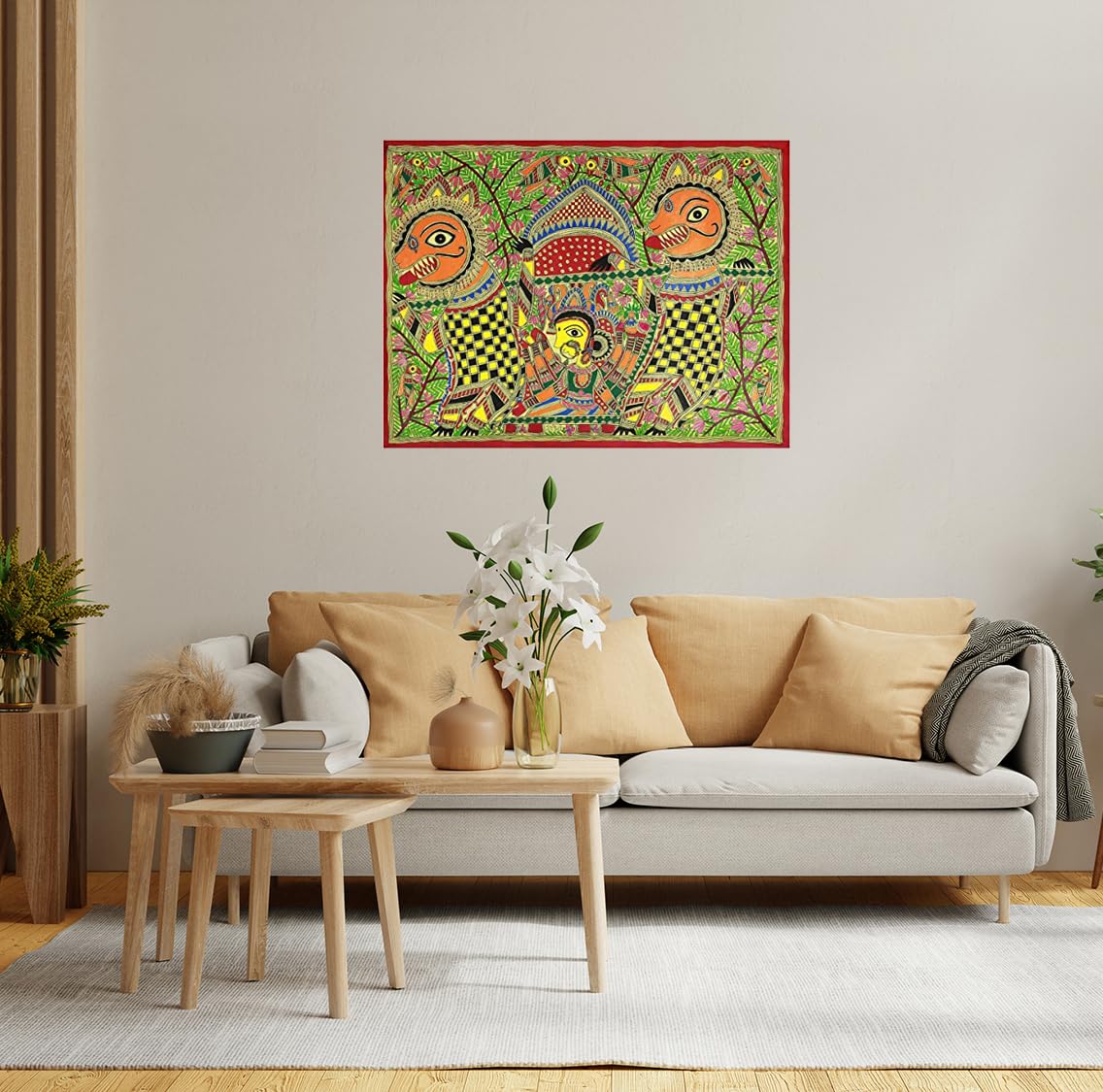• Madhubani art paintings for wall decoration is exhaustively open to diverse interpretations. Instead these paintings give viewers the occasion to peek into depths of paintings and create a story of it in your mind. Madhubani art believes in not giving a c