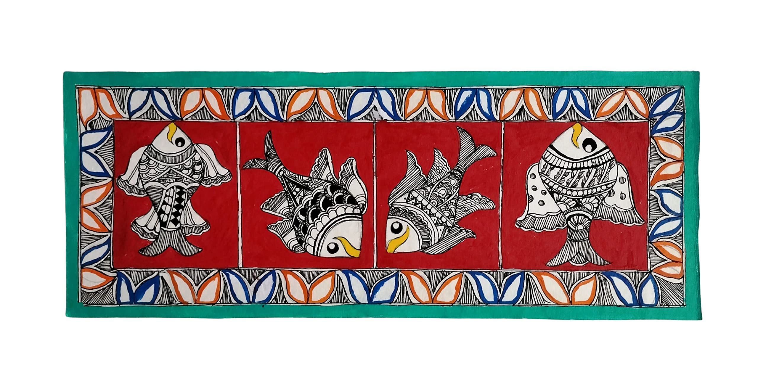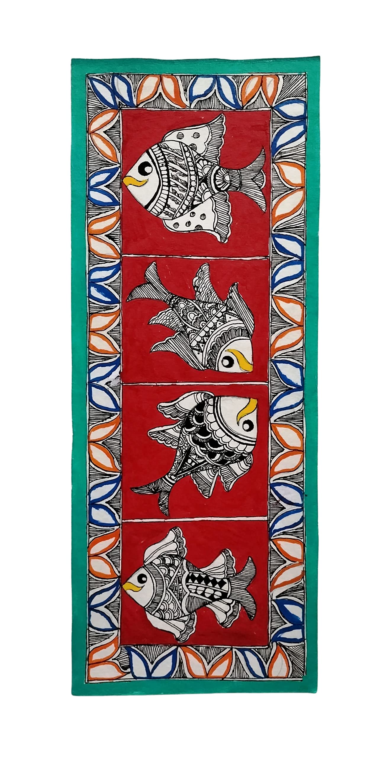 MADHUBANI PAINTINGS MITHILA PAINTING/MADHUBANI PAINTING OF FISH- FULLY HANDMADE- (16X6.5 INCH)-UNFRAMED