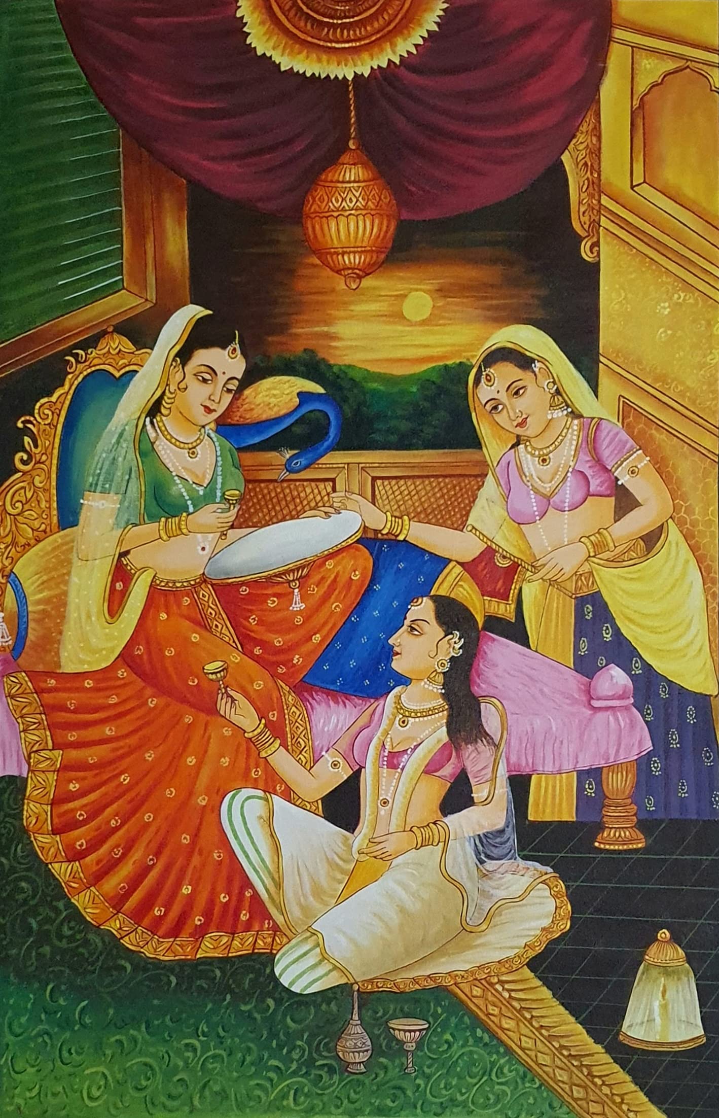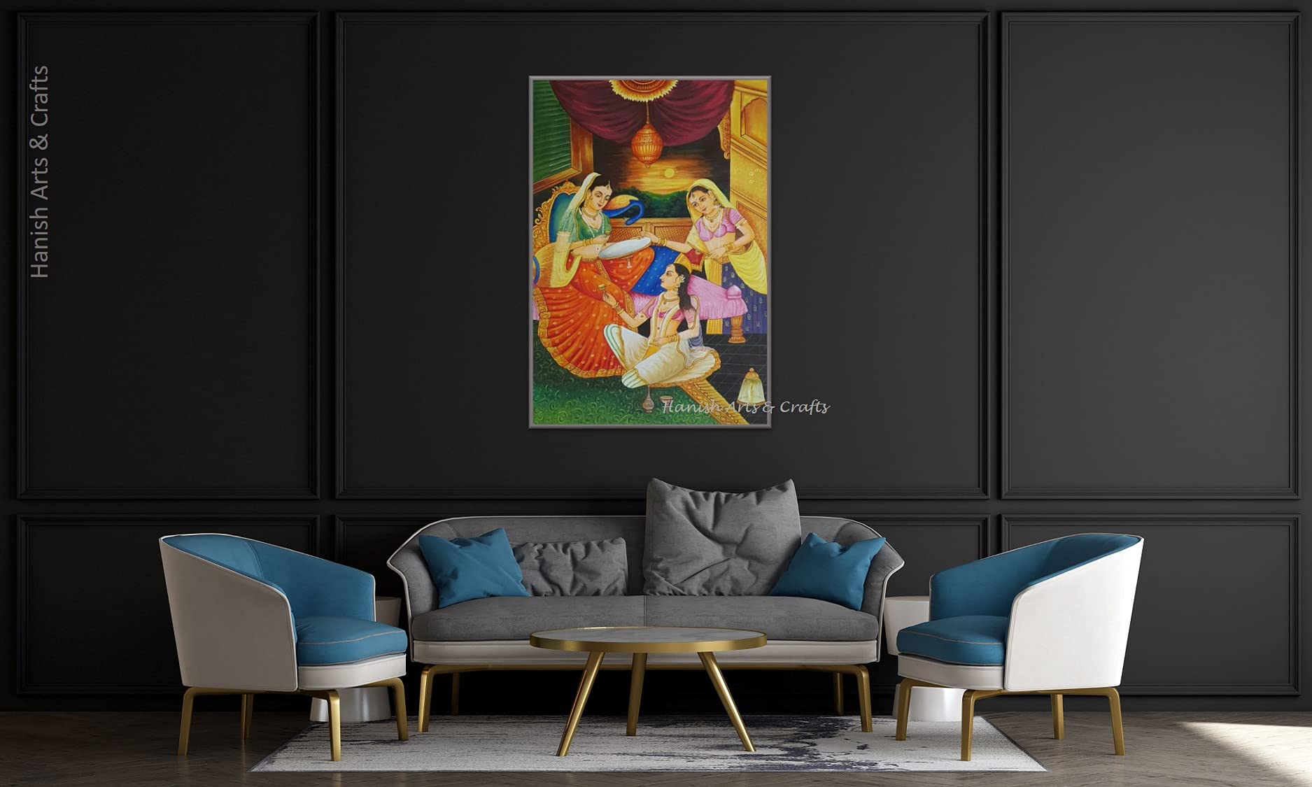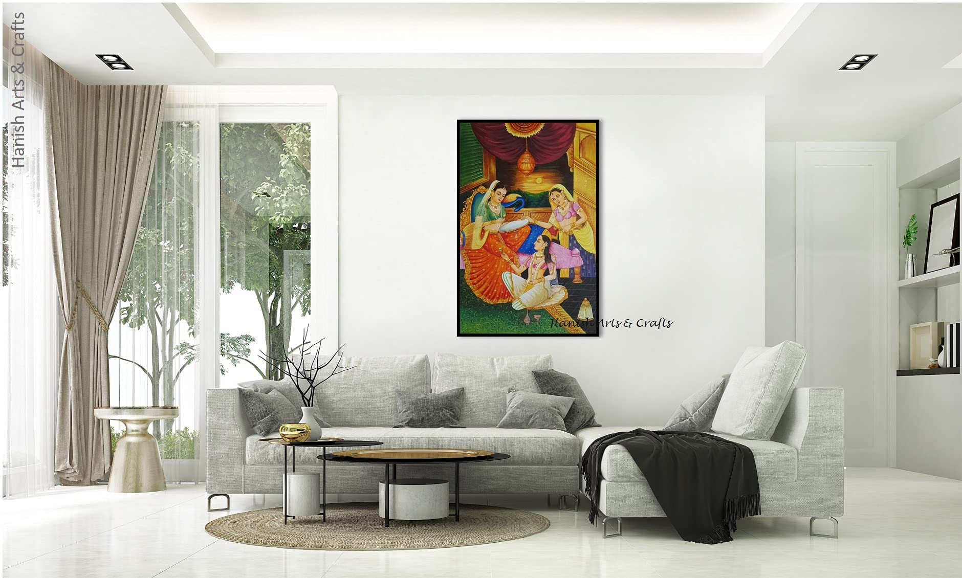 This is a hand painted original painting on canvas. In the upcoming marketplace wall paintings are setting a new trend. With the range of designs colours and sizes we offer you the best of quality. To enhance the decor of your house is our priority. So we even customise designs as per client needs. We have a wide range of more than 500 designs which come with different packaging. The packaging in itself is very creative to make it a hassle- free job of gift wrapping. So order as per your requirement in single piece or sets we offer. The diversity of designs assists you to decorate these in your Living room Bedroom Kitchen. PICHWAI- PAINTED TEMPLE HANGINGs & Crafts is an art making company which makes paintings on Canvas Paper Silk Cotton Wooden and Stone. We are associated with more than 40 artists who are dedicatedly working for us. Painting is our parental business and we are in this business since four decades. We can provide any kind of customized paintings in any size as per your requirement. Our mission is to unlock the potential of human creativity-by giving a million creative artists the opportunity to live off their art and billions of fans the opportunity to enjoy and be inspired by it.