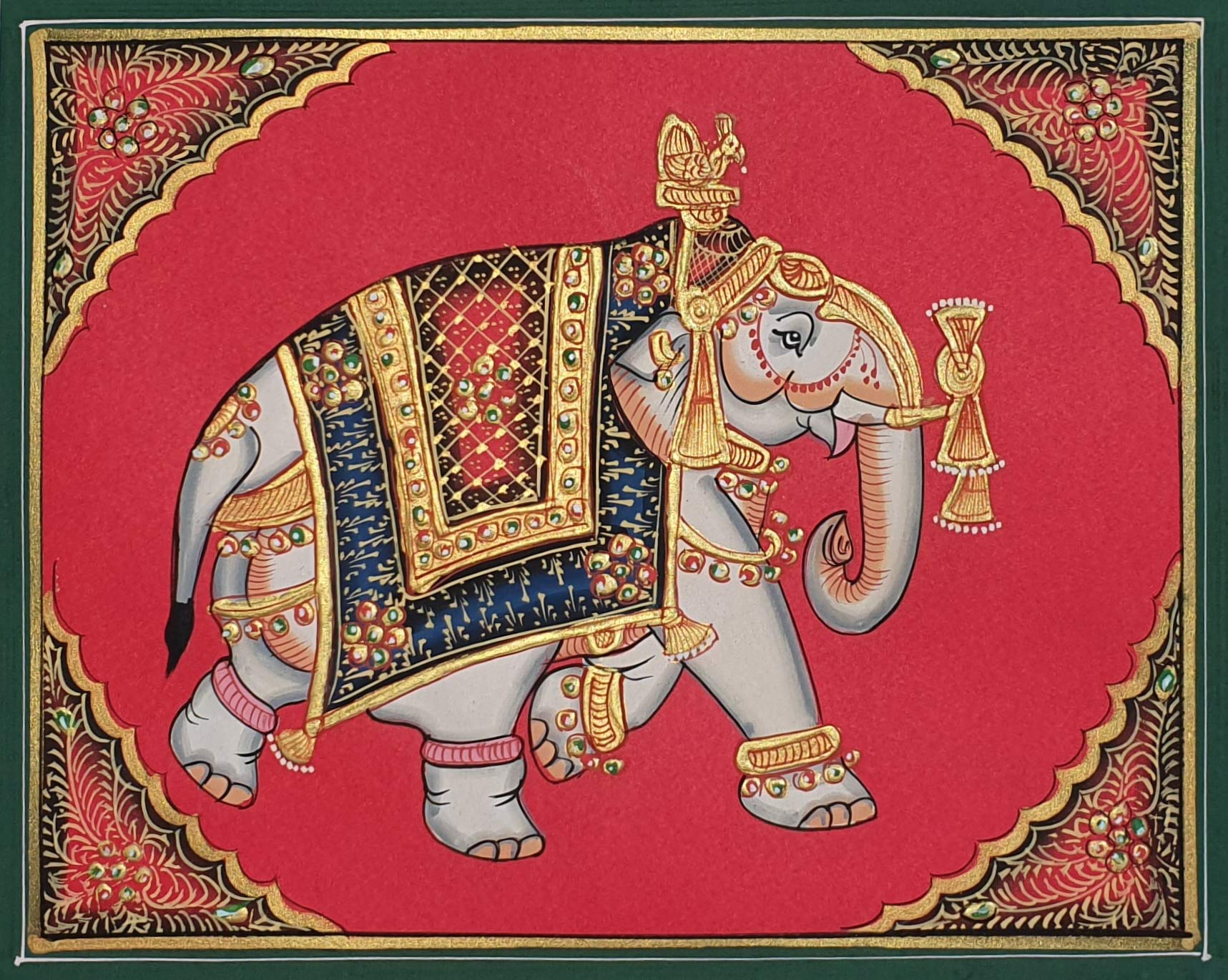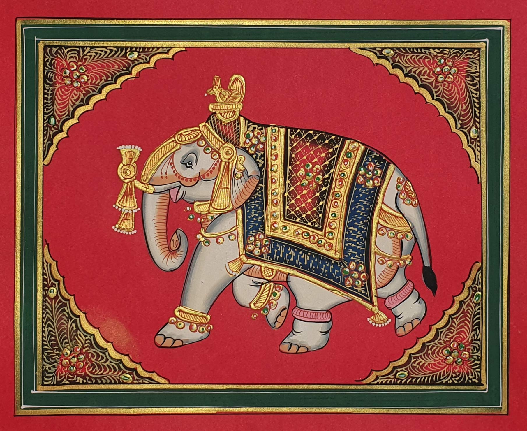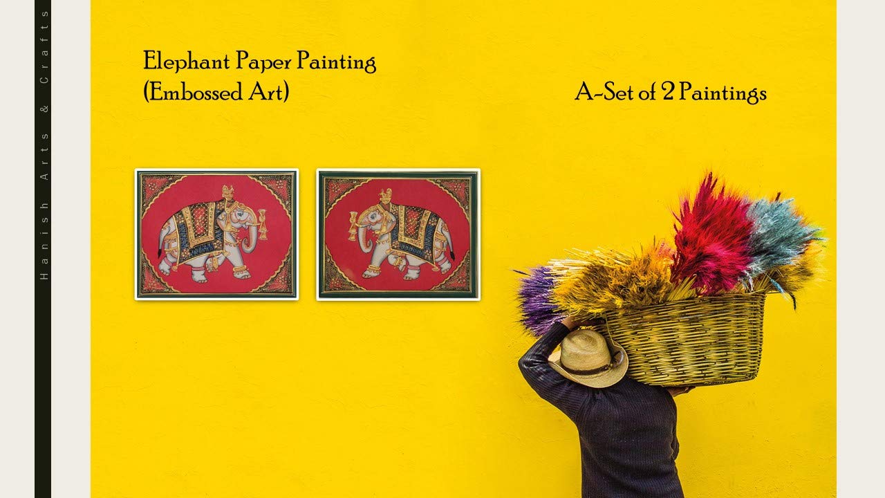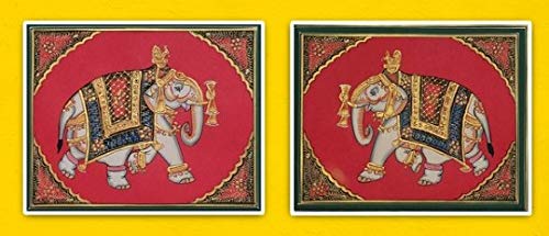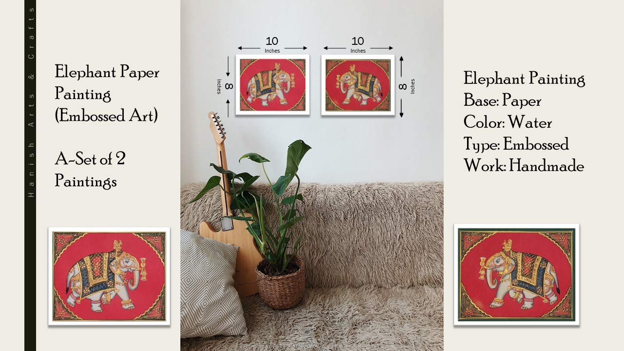 PICHWAI- PAINTED TEMPLE HANGING - Embossed Elephant Art (A set of 2 pcs) (Handmade Painting) E001. Overview a beautiful painting involves the action or skill of using paint in the right manner; hence the end product will be a picture that can speak a thousand words they say. Arts have been in trend for quite some time now. You can gift this to a family or a friend. The painting has various forms of certain figures on it as seen in the image. You can add a good set of lights to the place where the painting is and the decor will give a different feel and look to the place. Quality and durability the painting has a matte finish.