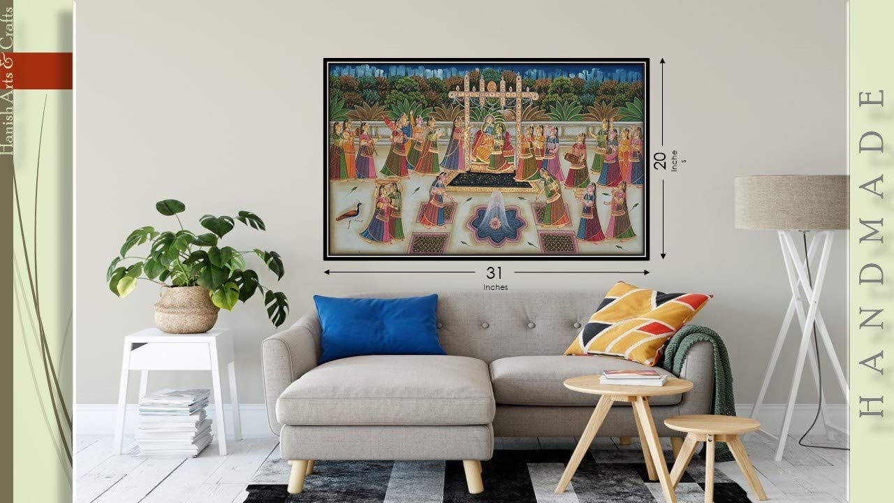 A beautiful painting involves the action or skill of using paint in the right manner; hence the end product will be a picture that can speak a thousand words they say. Arts have been in trend for quite some time now. Pichwai (pichvai) is a style of painting that originated over 400 years ago in the town of Nathdwara near Udaipur in Rajasthan India. Intricate and visually stunning pichwai paintings made on cloth depict tales from Lord Krishna's life. Pichwai (pichvai) is a style of painting that originated over 400 years ago in the town of Nathdwara near Udaipur in Rajasthan India. ... Lord Krishna is often depicted as Shrinathji in Pichwais which is the deity manifest as a seven-year-old child. You can gift this to a family or a friend. The painting has various forms of certain figures on it as seen in the image. You can add a good set of lights to the place where the painting is and the decor will give a different feel and look to the place. Quality and durability the painting has a matte finish.