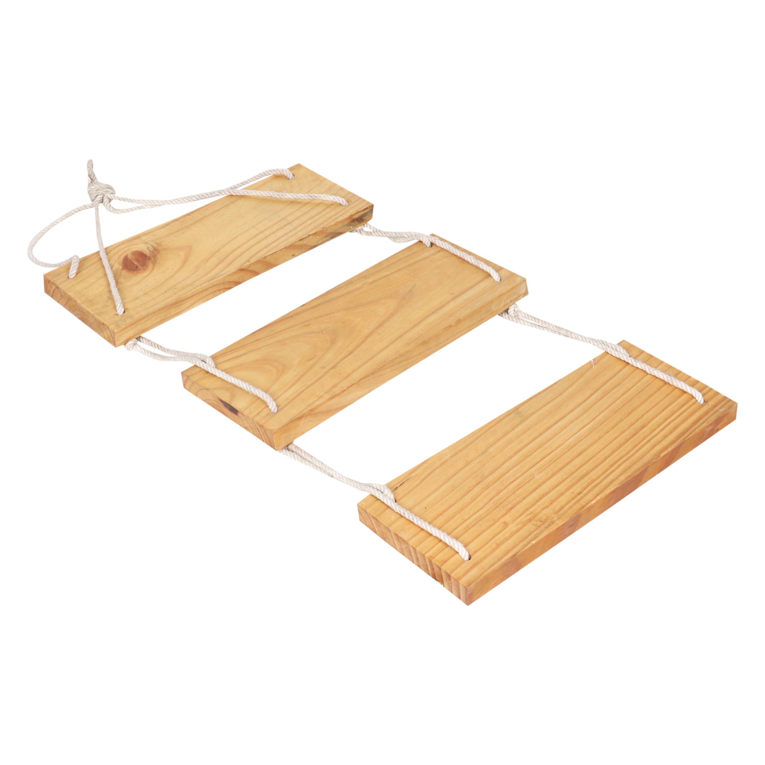 Handmade 3 tier wall hanging shelving. This is an example of small natural pine shelves with white cords.