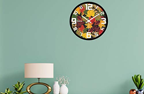 Clarco Brand Big Size Leaf Theme Analogue Round Plastic Wall Clock with Glass for Home/Living Room/Bedroom/Kitchen/Office (12 x 12 Inch )(WL_970L)