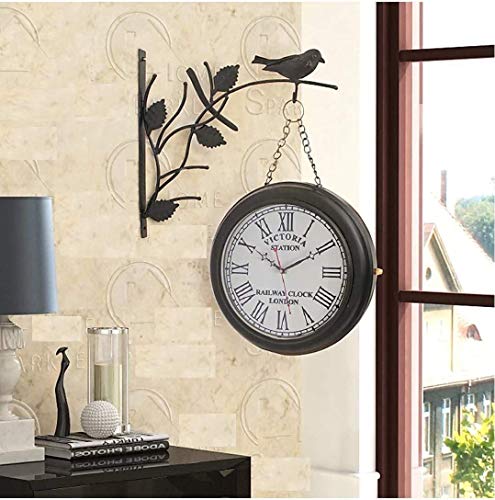 SAREE HOUSE Wood and Metal Vintage Antique Double Sided Station Clock (Black and Victoria White 10 Inch)