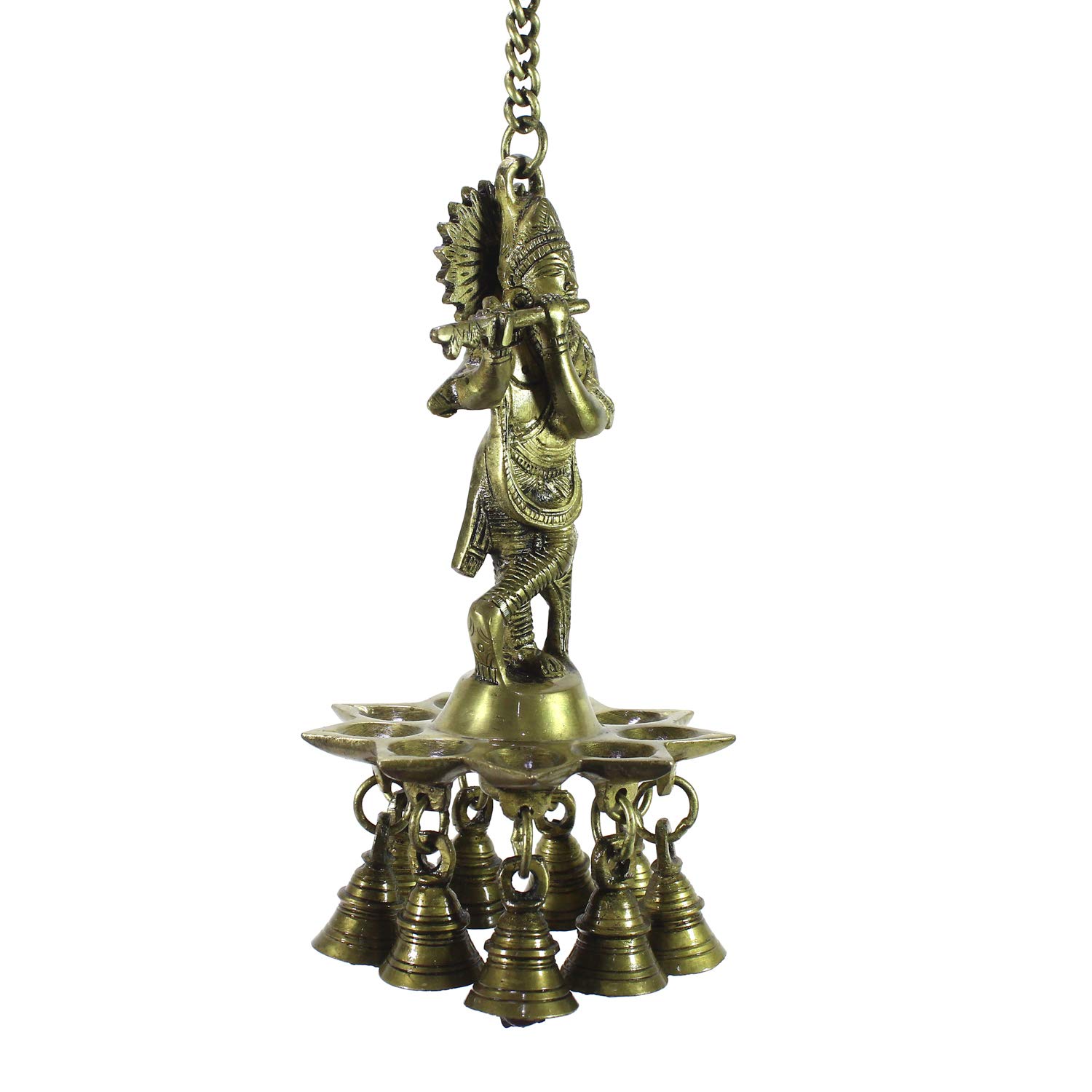 • Package Contents: 1 Brass Lord Krishna Playing FluteWall Hanging with 9 Oil Wick Diya