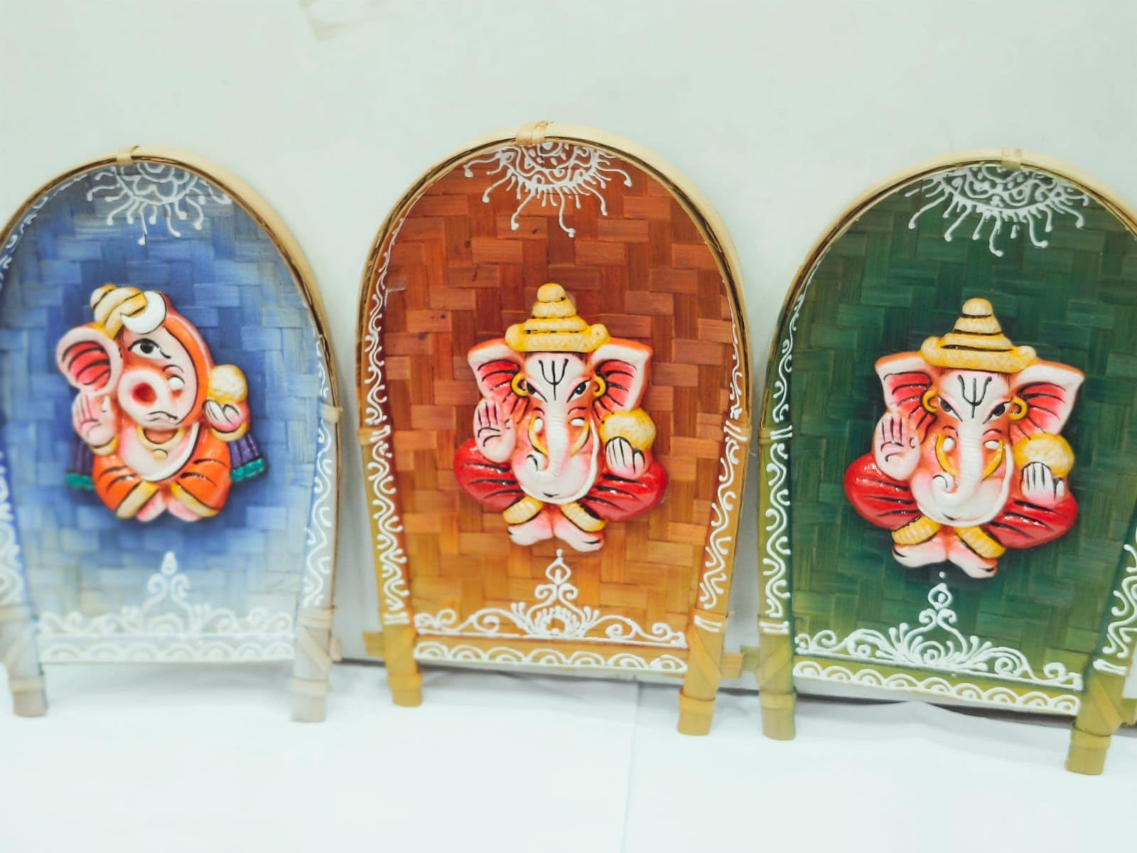 Adorn the walls of your living space with this exquisitely made aesthetically pleasing and visually stimulating bamboo eco-friendly Ganesha wall art. The art is imaginative and captivating. The artwork is made of clay in a handmade bamboo base and will breathe new life into the walls of your room. This Ganesha wall dcor is without glass lightweight and durable. It will also make a thoughtful and unique gift for your loved ones on special occasions and can be a return gift. Enhance the ethnic look of your home with handmade eco-friendly Ganesha wall dcor. The size is 10 inches and the width is 6 inches. On the back side of each wall dcor there is a loop by which you can hang in the wall. Made of durable and nontoxic materials they are built to last and adorn your wall space for years. The Highlight of this Ganesha Wall Dcor product is the intricate detailing of the Ganesha happily playing . And spreading the aura of music and happiness . A true handicraft lover will surely love this craft. Size 6 inches X 10 inches( approx)