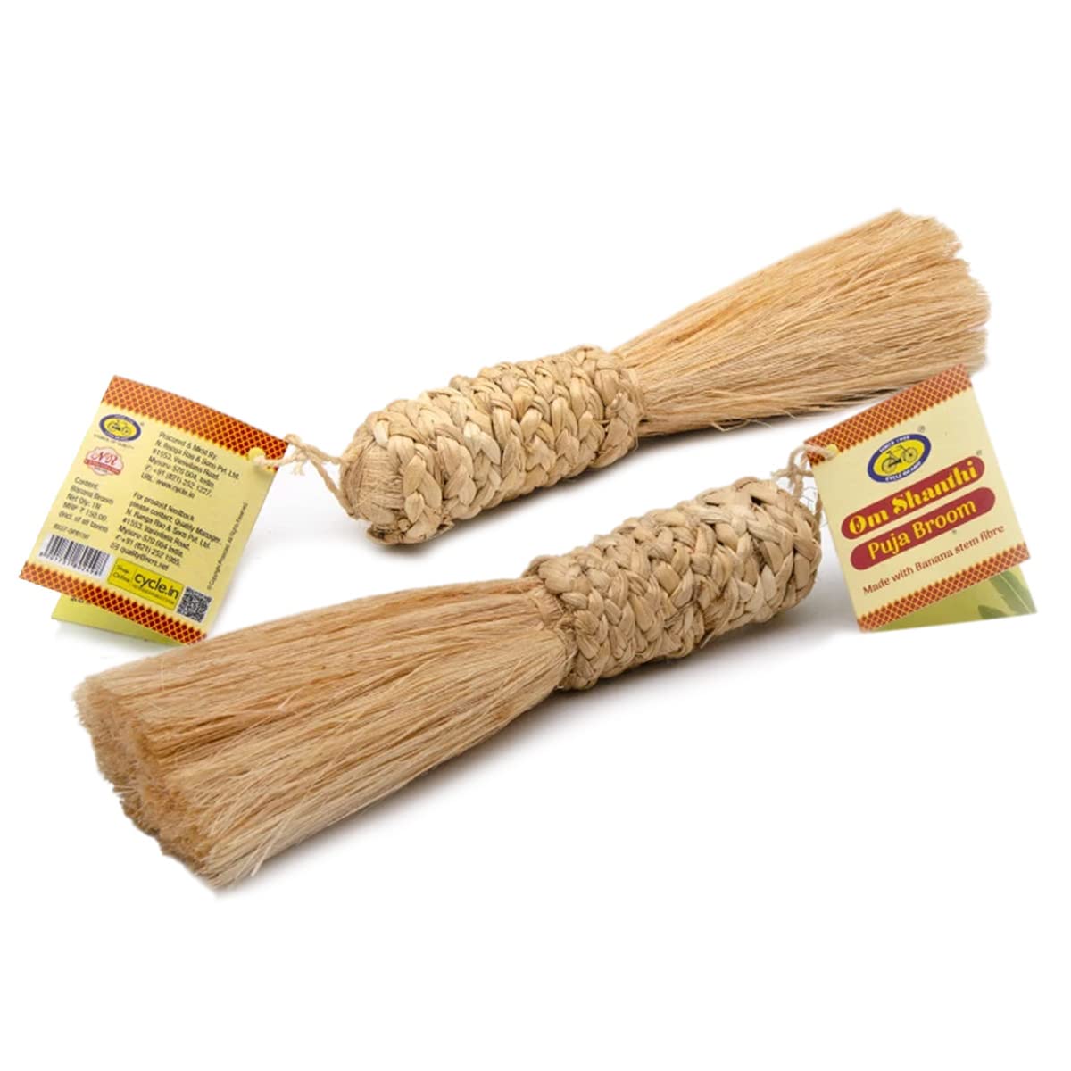 Cycle Pure Om Shanthi Puja Broom is an eco-friendly Puja broom designed to help clean your puja room easily and conveniently. Made from pure banana stem fibre it is light to carry and easy to maintain. It can be used in your Puja room meditation space prayer room office puja room (office Puja) home mandir home mantap.