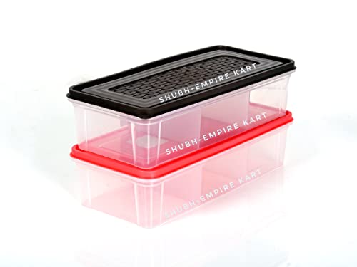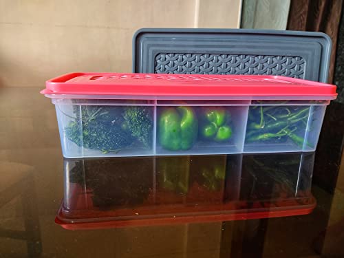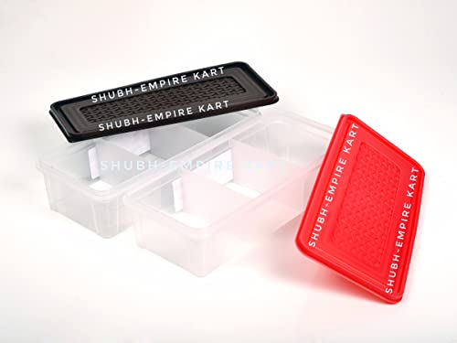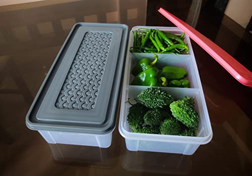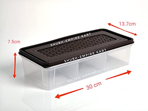 Shubh Empire 3 Partition Fridge Storage container Boxes OrganizerVegetable Refrigerator Plastic Storage Box For KitchenFor dry/Liquid foodStackable Microwave Safe Container For Fish Meat-Pack Of 2