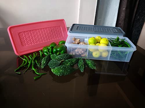 Shubh Empire Fridge Storage Boxes Fridge Organizer with Removable Drain Plate and Lid Stackable Fridge Storage Containers. 1.Made of 100% food grade PP material. With a removable lid smooth edges and surfaces will not hurt your hands. Dishwasher safe stackable refrigerator safe. 2.The fridge organizers with detachable drain plate can prevent fruits vegetables and meat from being immersed in water. 3.The design of the fridge containers can save a lot of space in refrigerators freezers cabinets and drawers. They help organize the refrigerator and keep things tidy. 4.Perfect design and high quality. Very good tool perfect storage and freshness. Easy to use and clean. 5.Clear freezer container easy to find your food. Add the lid prevent odors and keep your food dry and original. *DURABLE AND EFFECTIVE SEALING These fridge containers for storage are made of high food grade plastic which is highly durable. Refrigerated storage effective sealing prevent the interaction of different food odors facilitate the management of food and save space. *WITH REMOVABLE DRAIN LID AT BOTTOM Freezer storage containers comes with a drain lid below which drains the moisture from the food which helps in keeping the fruits & vegetables fresh all over the long durations; this fridge storage box is a blessing for urban modern smaller kitchens or where there are space constraints. *DRAINAGE PLATE DESIGN The bottom of the drainage plate is raised to reduce food contact with the bottom so as to avoid food damage caused by dampness. *STACKABLE TO SAVE SPACE The refrigerator storage containers design allows for excellent space savings in the refrigerator freezer cupboard and drawers. *They help organize the fridge and keep things clean and tidy MULTIPURPOSE Food Storage Container suitable for storing seafood meat