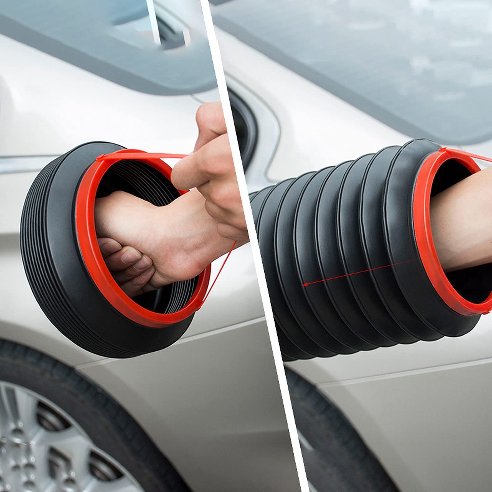 CLEANLINESS - The Wolpin foldable & retractable TRASH CAN keeps your car clean and tidy. This TRASH BIN is very handy and an ultra-convenient car accessory that will help you get rid of all your unwanted trash. It's perfect for throwing your daily garbage without making your car untidy. It's really easy to empty it.