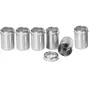 Set of 6 See through canister diameter size 9 each; 6 piece set of canisters / kitchen storage made up of stainless steel, is very high quality, extremely durable and rust free. Having mirror at the top helps to see through the items easily without opening the same. 750 ml each