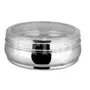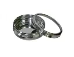 Food grade Rust Proof and Hygienic steel with See Through Lid you can store roti chapati khakhra thepla puri bhakrimukhwas dryfruits choclates buiscuits finest stainless steel material which ensures strength quality and durability Highly handy easy-to-use occupies less space and elegant steel bowl with airtight lids to prevent moisture Non-magnetic stainless steel body dishwasher safe and easy to clean Product Dimension- 12.5x12.5x6 cm