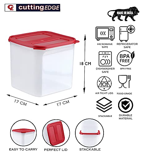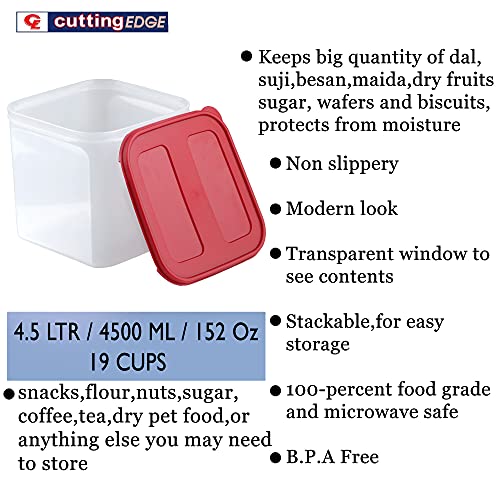Cutting EDGE Square Modular Air Tight Multi Purpose Container Set - for Rice, Flour, Cereals, Sugar & More (Dark Red) (1, 4.5L)