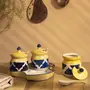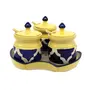 HomeKitchenServeware setsSpoonsKHURJA POTTERY Blue & Yellow Ceramic Hand Painted Table Top Jars Set (3 Jars with 3 lids 1 tray with 3 spoons) for Kitchen/Dinning Table/Chatni/Spices/Storage 140 ml each