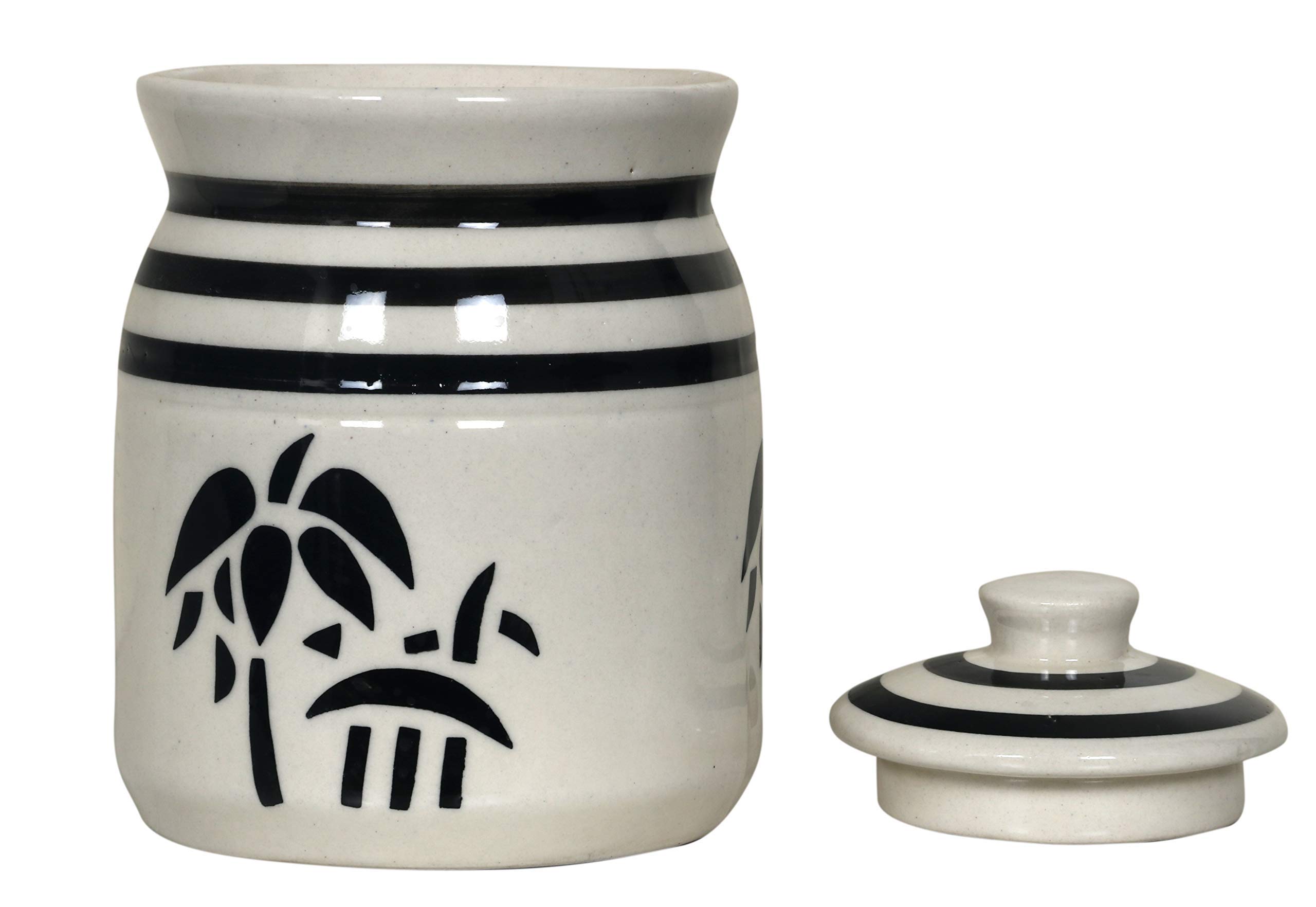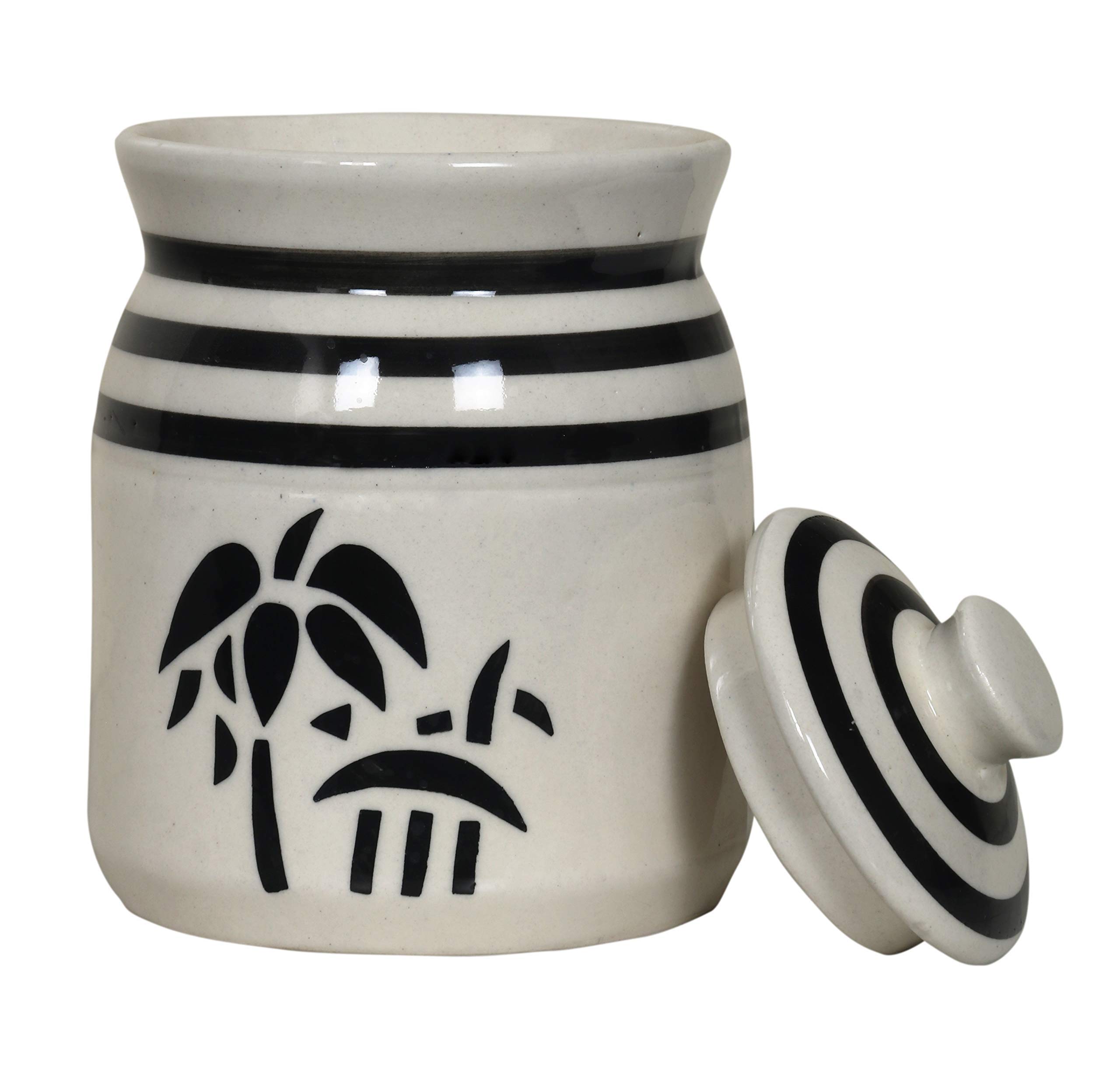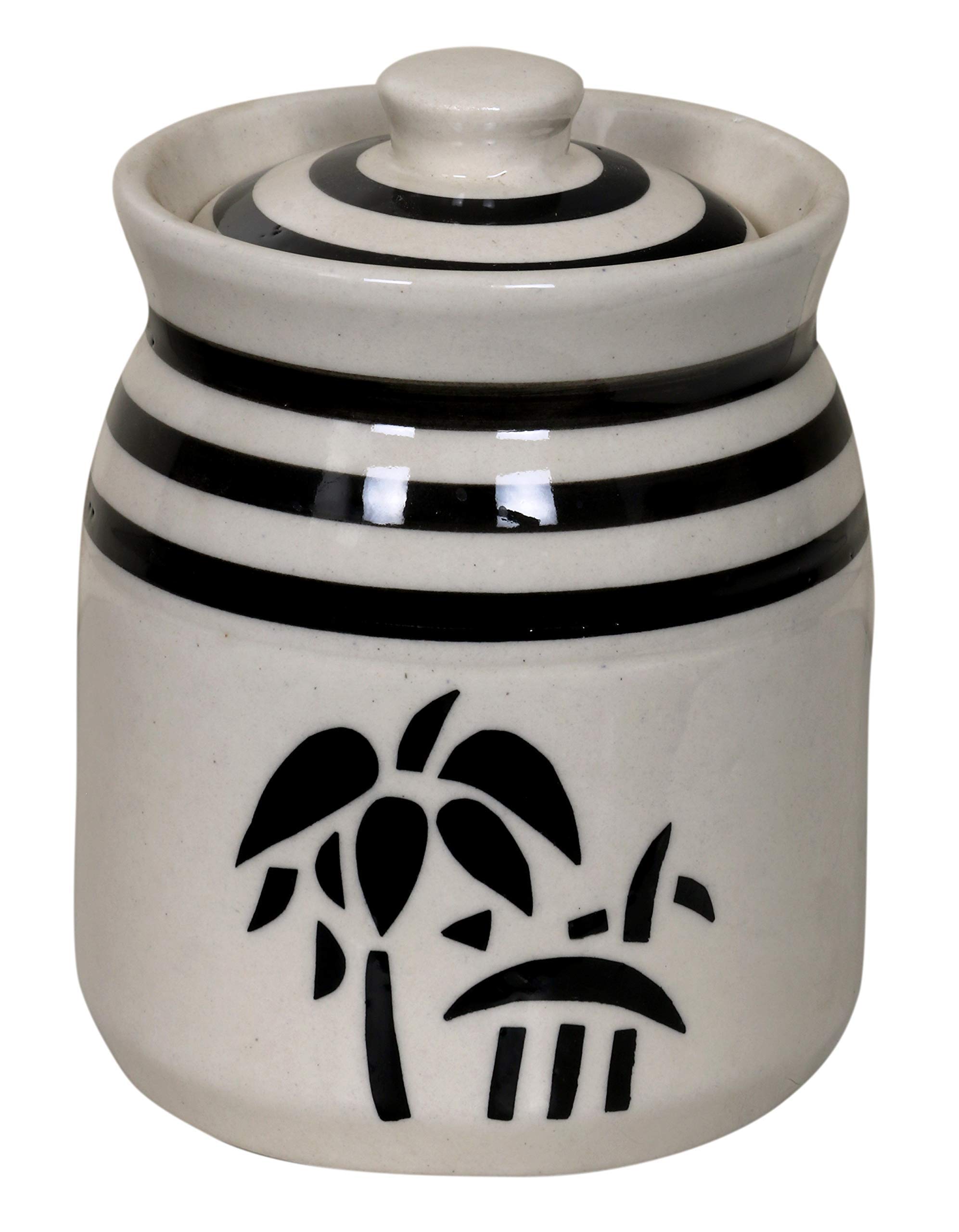 KHURJA POTTERY Grey Pottery Hand Painted Ceramic Cornichon Storage Jar for Pickle (1.25 Kg)