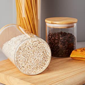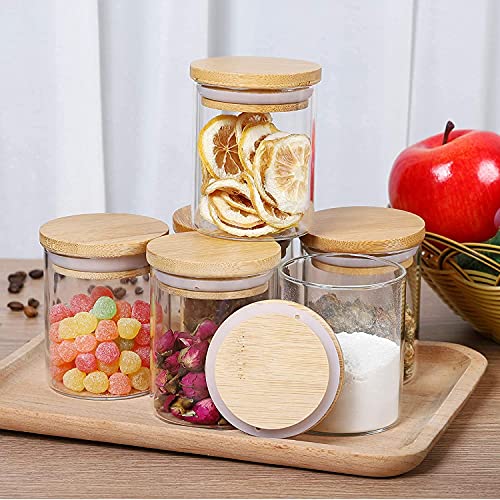 LABROS 6 Bottles Glass Jar Set Small Air Tight Canister Storage Containers with Natural Bamboo Lids (220-ML Glass JAR)
