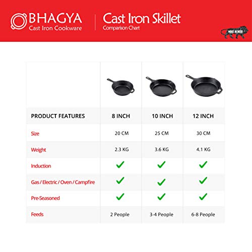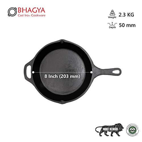 Bhagya Cast Iron Cookware Pre-Seasoned Skillet / Fry Pan (8 inches lengthy)