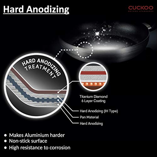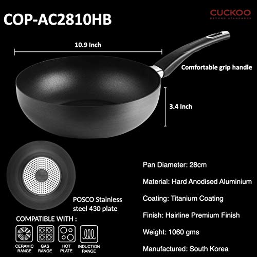 CUCKOO COP-AC2810HB Kyndell Series Titanium Diamond Coated Frying Pan/Wok Black