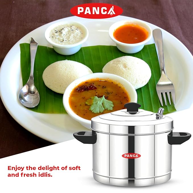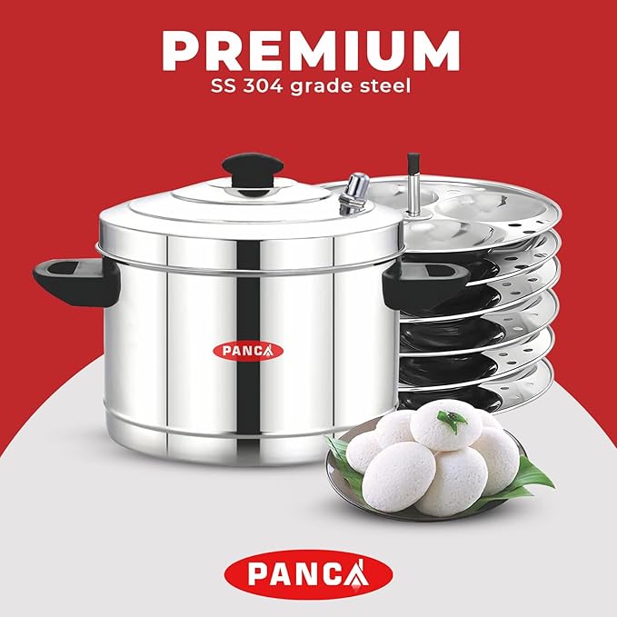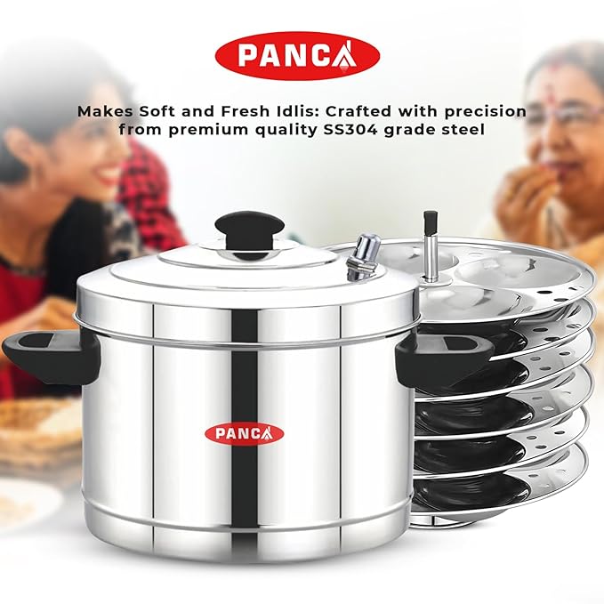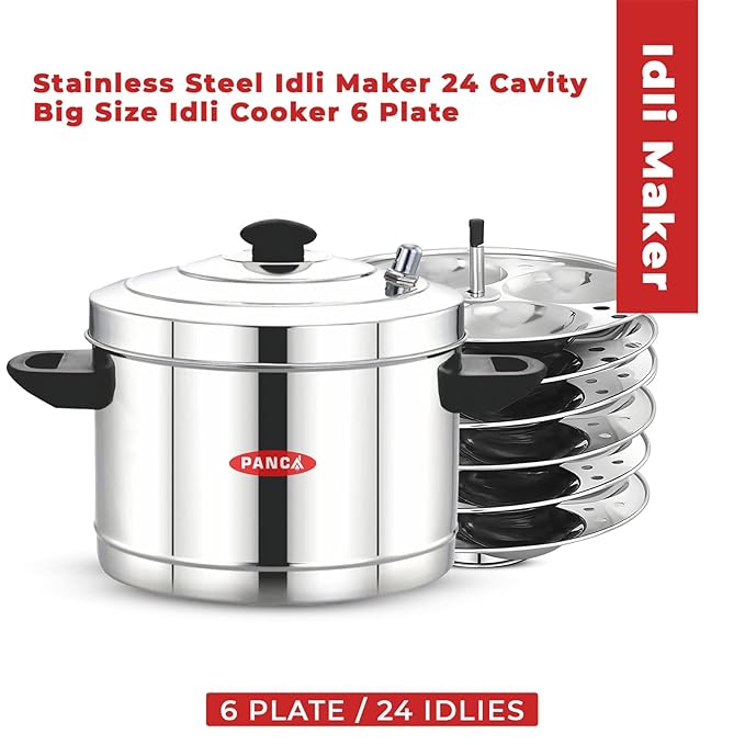 PANCA Idli Maker 6 Plates Stainless Steel 24 Idli Cooker | Induction & Gas Compatible Idly Steamer Pot | South Indian Idli Kadai with Dhokla Patra Steamer, Sambhar Chutni Wada Maker 15L Silver