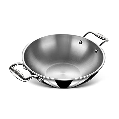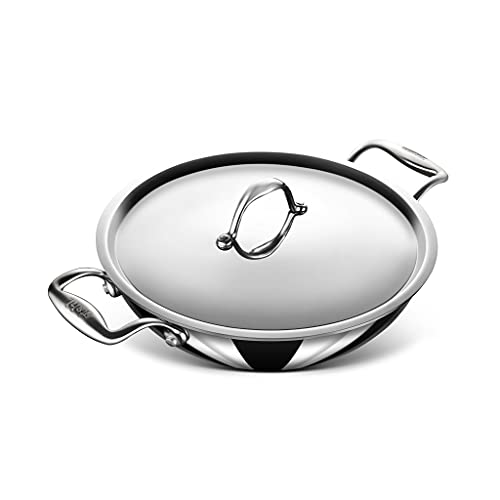 German technology has come together with Indian craftsmanship to create a world class quality of cookware that is proudly built in India. Whether you prefer cooking in a traditional Indian kadhai or are looking for a kadhai for a big family the Stahl Artisan range is passionately built to suit all kinds of Indian cooking. Great to Make : Stir-fry vegetables breakfast delicacies like poha upma lentils curries etc. The Kadhai is made in the finest quality of triply stainless steel. The middle layer of triply is a heat conducting layer which is sandwiched between food grade SS 304 surgical stainless steel and induction friendly magnetic stainless steel. It uses 20% less oil than normal cookware. Stahl cookware is the only triply cookware that boasts of investment cast ergonomic handles that are a perfect grip in your hands. The heatproof handles ensure that your hands dont feel the heat. The kadais seamlessly rounded edges enable a spill proof smooth pour.