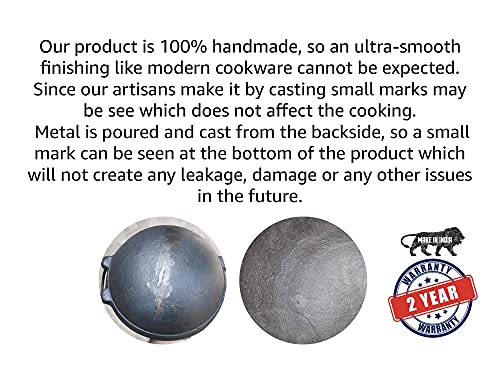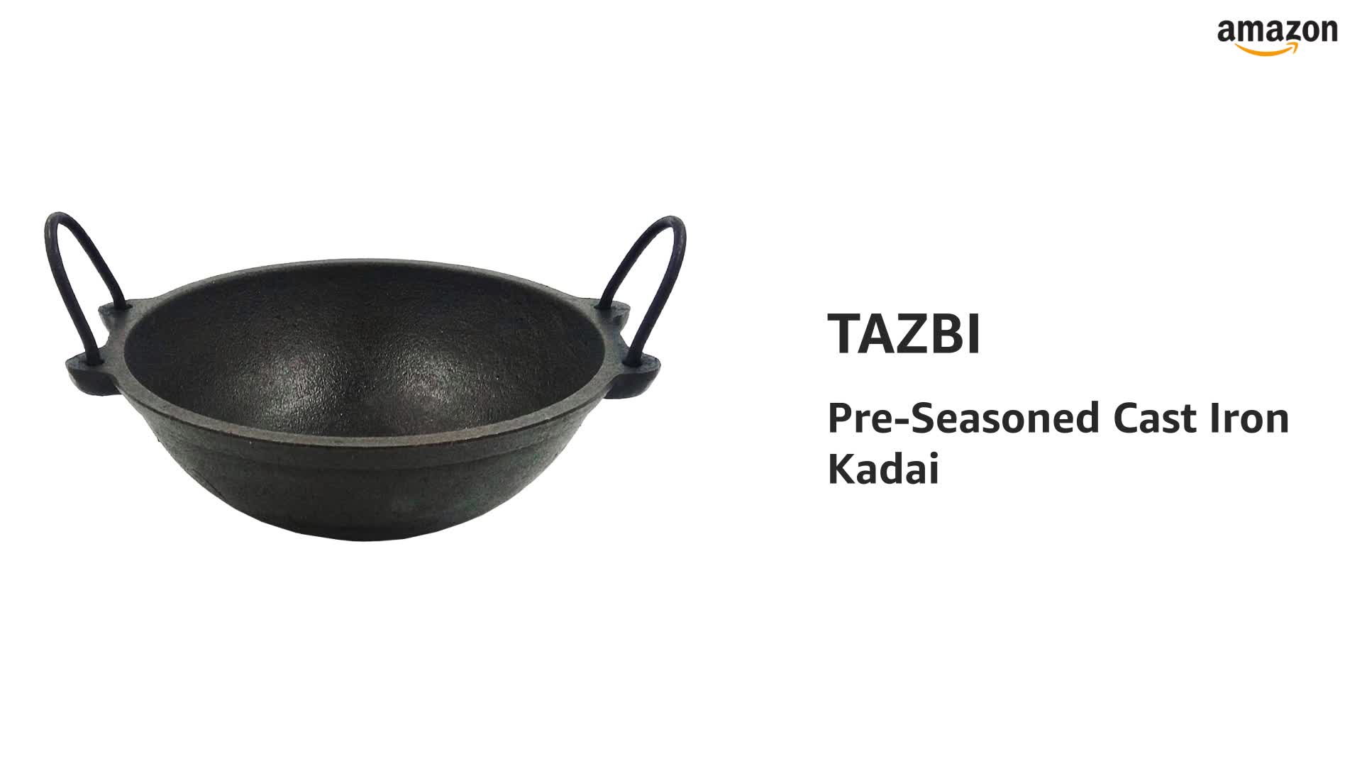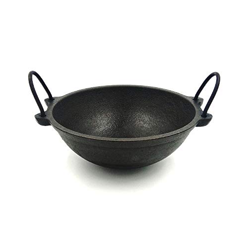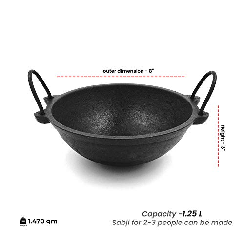 TAZBI Pre-Seasoned Small Cast Iron Kadai 8 Inch (Ready to Use-Hand Seasoned by Village Ladies Using Oil) Black