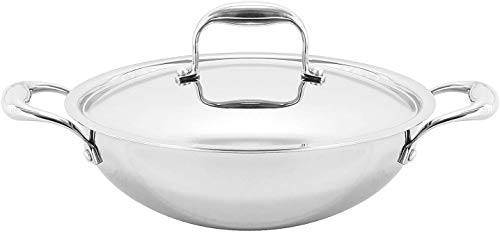 HomeKitchenTraditional CookwareKadhaiVinod Platinum Kadai Triply Stainless Steel | Suitable For Indian Cooking, Sauces, Stews, Soups | Deep/Extra Deep Kadai With Lid | Induction, Electric Friendly (Deep Kadai, 28cm)