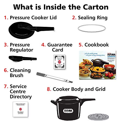 1 - Pressure Cooker Body with Grid 1 - Pressure Cooker Lid 1 - Rubber Gasket 1 - Vent Weight 1 - Guarantee Card 1 - Cookbook 1 - Service Centre Directory