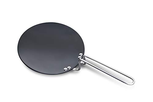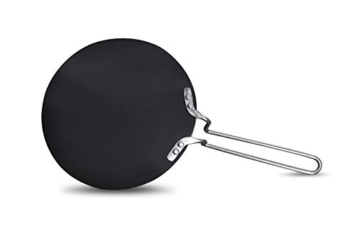 "Hard Anodised Concave Tawa 22 CM 4.06 MM 1.Stainless Steel 304 Grade Wire Handle 2.Sturdy Stainless Steel Rivets 3.Made From 4.06 mm Thick Hindalco Aluminium 4.2.4 Times Harder Than Steel 5.Looks New For Years & Yrars 6.Non ToxicNon StainingNon Reactive Will Not PitTarnish Or Corrode "
