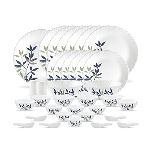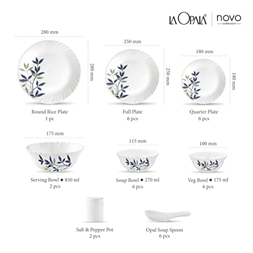 La Opala Novo Collection Opal Glass Dinner Set 35 pcs Silken Charm White