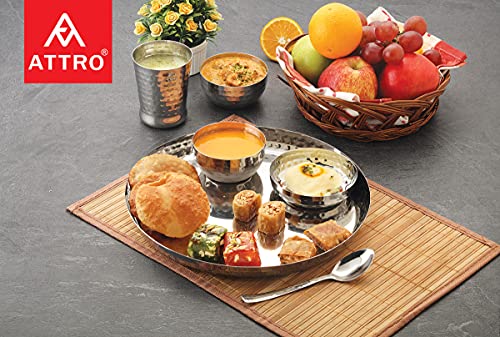 ATTRO STAINLESS STEEL DINNER SET - It is for multipurpose use for in-home offices and restaurants. It is the basic plate which is required everywhere. It is very economical in range made of food grade stainless steel. It is non breakable durable sturdy rust free and long lasting. Easy to wash and hygienic. Best option for gifting in any festival or occasions.