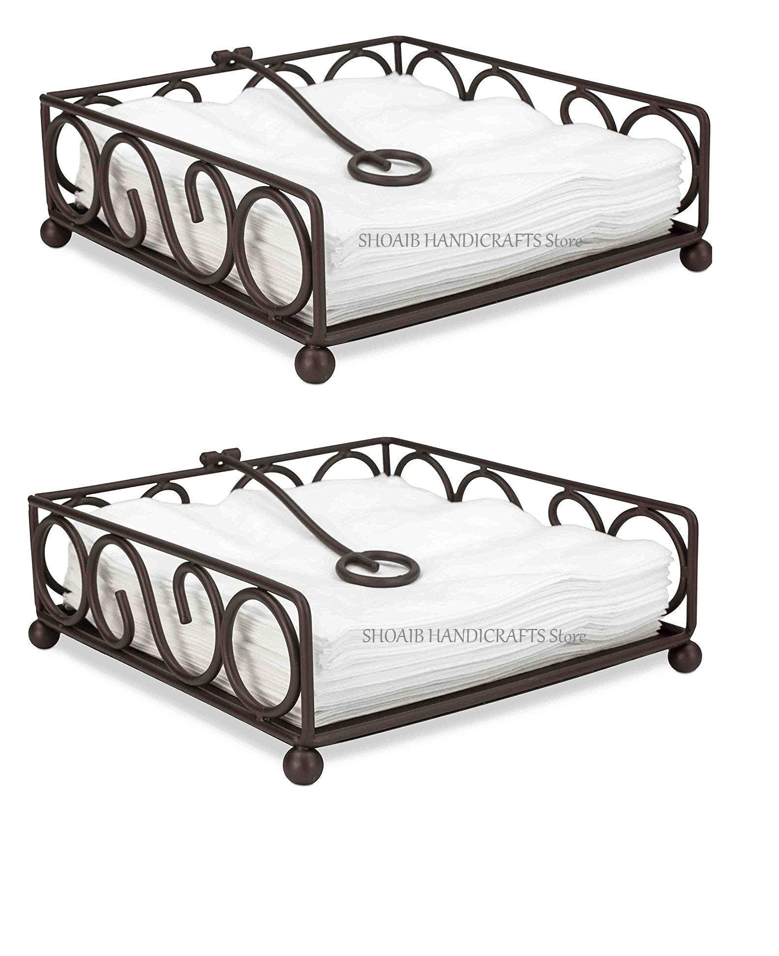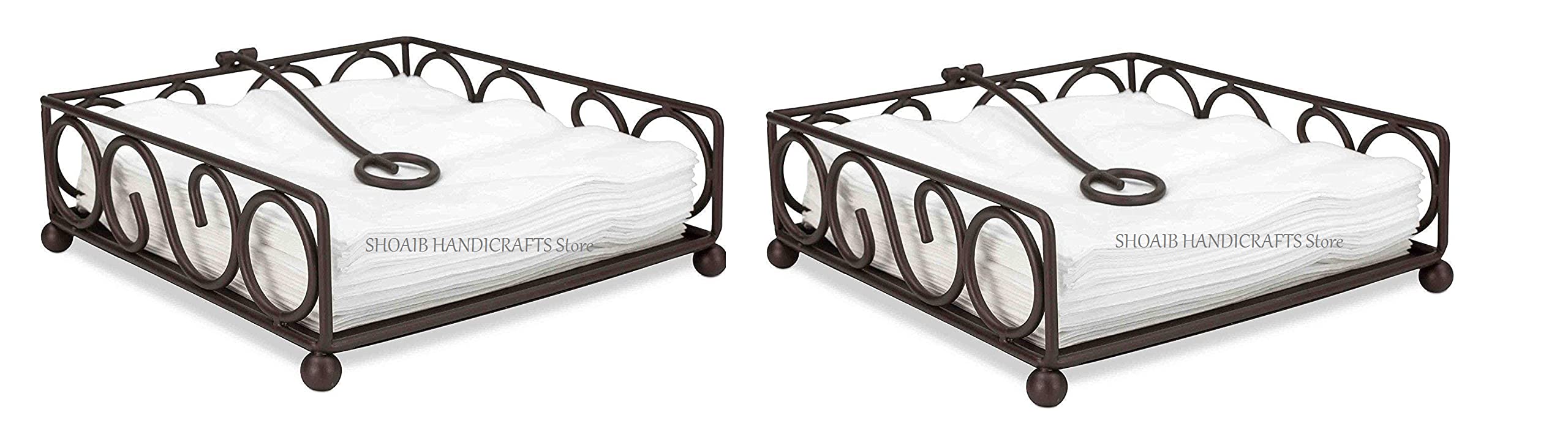 Add a touch of elegance to your dining table set up with this beautiful tissue stand/napkin stand. Made of Wrought Iron with the color Black. With a minimalist and simple design this tissue paper holder keeps your tissue papers handy and ensures a neat and organized look. This dining table accessory will make a perfect utility item while adding a stylish edge to the decor SET OF 2