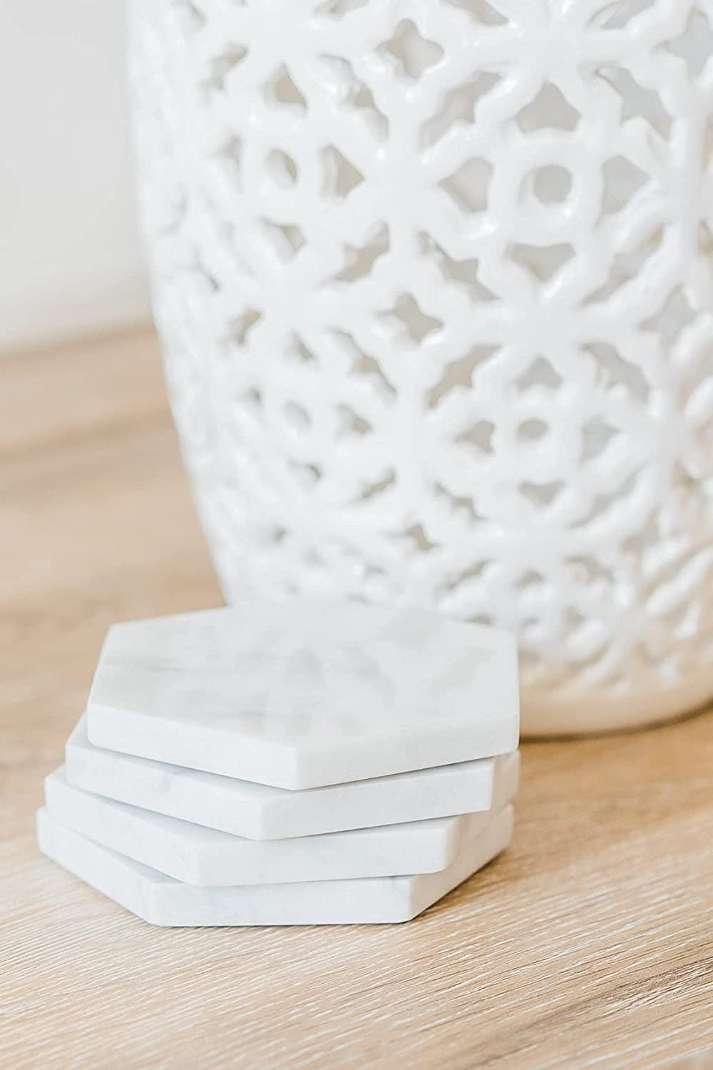 AGRA SOFT STONE CARVING PRODUCTS Modern Home Decor Hexagon Marble Coaster Set Set of 4