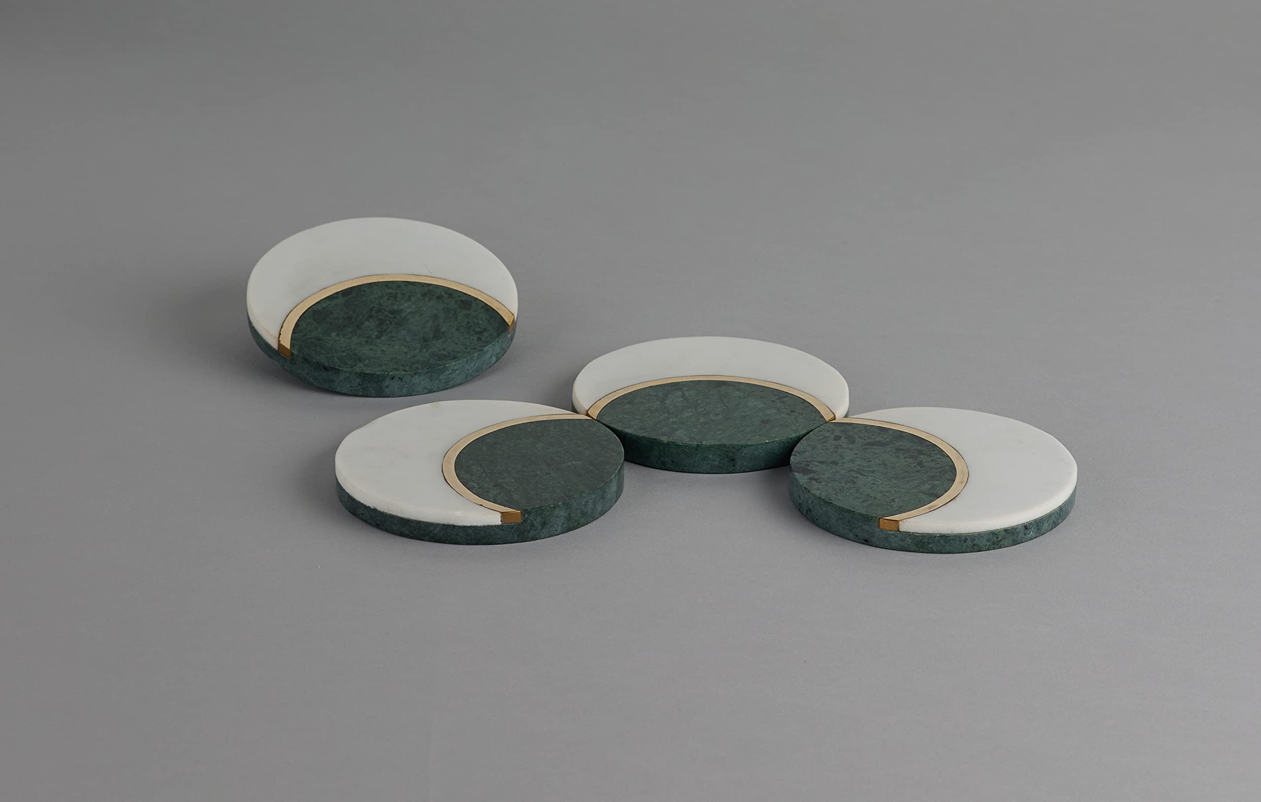 HomeKitchenDining setsCoaster SetAGRA SOFT STONE CARVING PRODUCTS White and Green Marble with Brass Inlay Coasters Set of 4 Round Shape Coaster for Glasses Cocktails Tea Coffee Cups and Gift