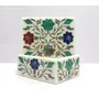 MARBLE INLAY ART AGRA - PACCHIKARI Handcrafted Marble Coaster Set/Coaster Set with Inlay Work. (Size - 4 x 4 inch)