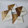 • Package contains: 4 nos marble wood Brass tea coasters || Material:Marble/Wood and Brass metal Sticker Inlay || Size : 4 inch