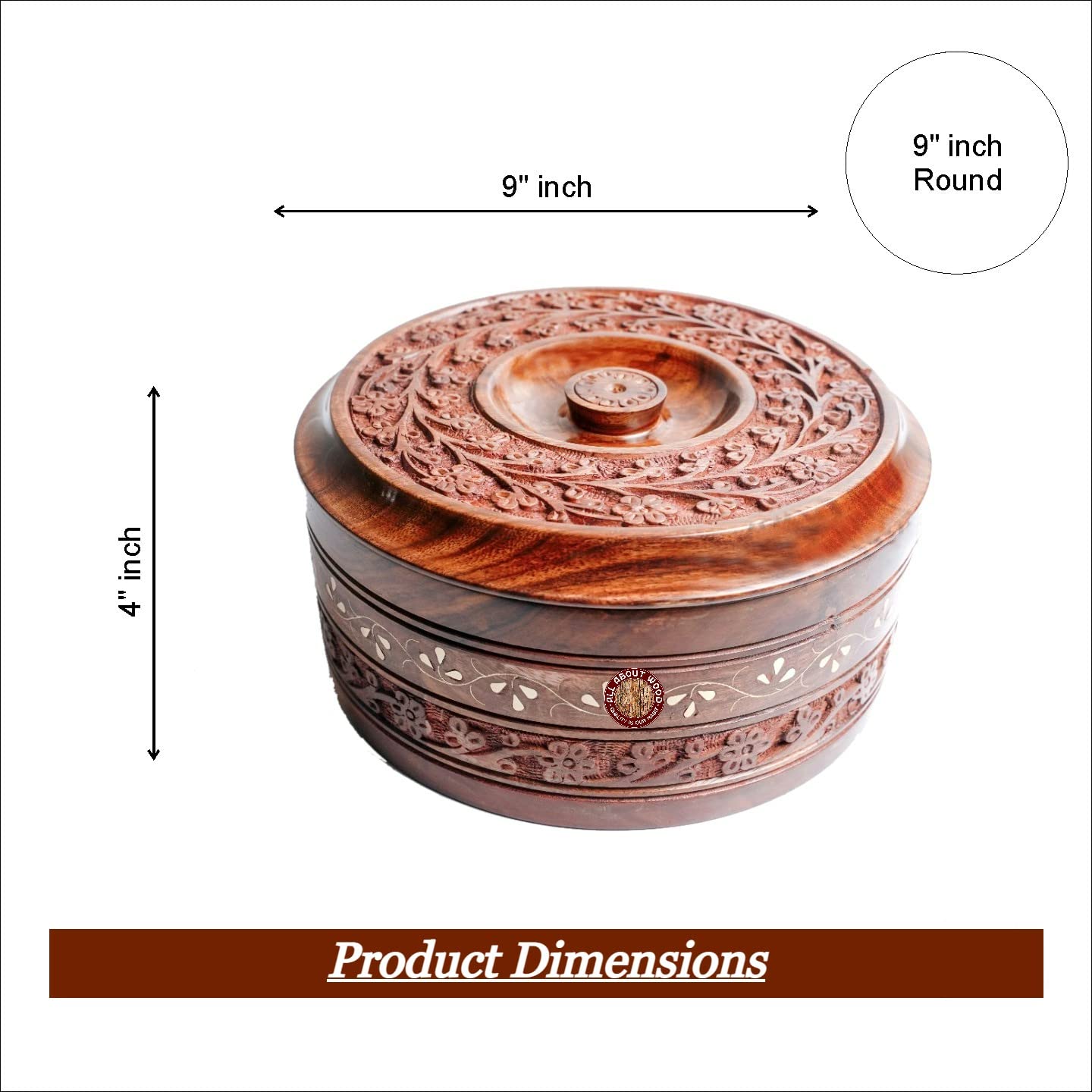 SAHARANPUR HANDICRAFTS Insulated Wooden Casserole/Chapati Box -Set of 1 (Sheesham Wood Diameter: 9 inches approx.)