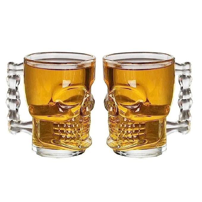 KHURJA POTTERY Skull Beer Mug 650 ml Set of 2 Glass Transparent for Your Home Bar (Set of 2)