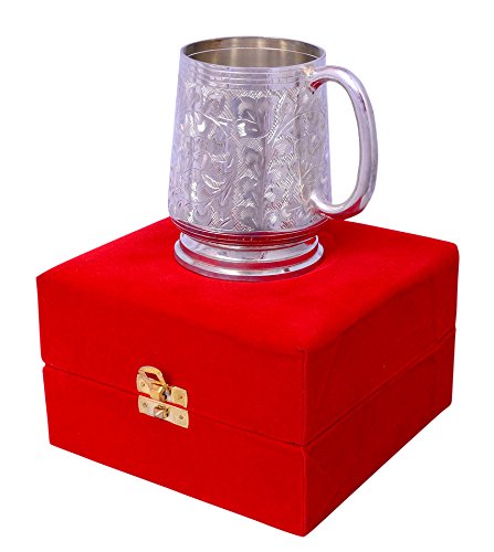 RAJASTHANI METAL HANDICRAFTSSilver Plated Decorative Coffee/Tea Mug and Decorative Purpose with Velvet Box- Set of 1 Pcs
