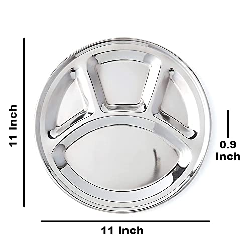 Khandekar Stainless Steel Round Divided Dinner Plates Compartment Dinner Plate with 4 Sections Mess